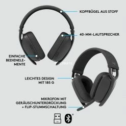 Mit dem Logitech Zone Vibe 125 Kopfhörer erlebt man intensiven Klang. Das Headset ist professionell genug fürs Büro, lässig genug für zu Hause und genau abgestimmt bei Arbeit und Spiel – ohne Kompromisse. Dieses leichte kabellose Headset verfügt über ein Mikrofon mit Geräuschunterdrückung und Flipp- Stummschalter, eine Reichweite von 30 m sowie einen USB-Empfänger für zuverlässigere Verbindungen