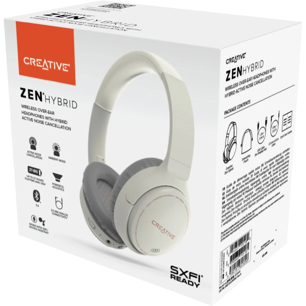 Mit hybrider aktiver Geräuschunterdrückung, die sowohl das Feedforward-als auch das Feedback-ANC-System übernimmt, und einem Umgebungsmodus, der genau die angemessene Menge an Umgebungsgeräuschen zulässt, damit Sie über die Ereignisse um Sie herum wachsam bleiben. Selbst bei eingeschaltetem ANC können kann man mit einer langen Akkulaufzeit von bis zu 27 Stunden rechnen. Die Over-Ear-Kopfhörer sind eine ideale Kombination aus Vielseitigkeit und Leistung- drahtlos oder kabelgebunden, im Freien oder drinnen -und mit einem geräuschunterdrückenden Mikrofon ausgestattet, das alle spontanen Anrufe bewältigen kann, wo immer man auch gerade ist. Der Creative Zen Hybrid wurde aus hochwertigen Materialien gefertigt, darunter ein verstärkter Stahlkern, 40-mm-Neodym-Treiber und eine physische Tastensteuerung am Kopfhörer selbst. Mit Creative Zen Hybrid findet man immer sein Zen.