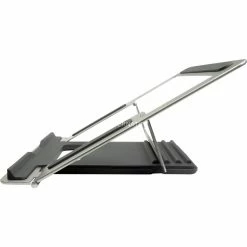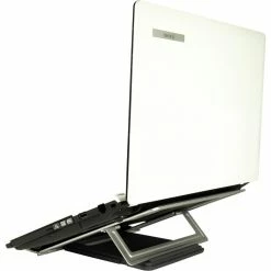 Der NBS-100 ist ein hochwertiger Notebook-Ständer, der für alle gängigen Notebooks geeignet ist. Er lässt sich in der Höhe in 4 Stufen verstellen (90 – 113mm, 23 – 30°) und trägt aufgrund seines Open- Frame-Designs passiv zur Kühlung des Notebooks bei. Dank der kompakten Abmessungen passt der NBS-100 auf nahezu alle Arbeitsflächen, was ihn zu einem optimalen Begleiter in der Notebook- Tasche macht. Großflächige Gummiauflagen schützen zudem das aufliegende Notebook sowie die Arbeitsfläche vor Kratzern und verhindern zudem lästige Vibrationen, die durch die Arbeit mit dem Notebook entstehen können.